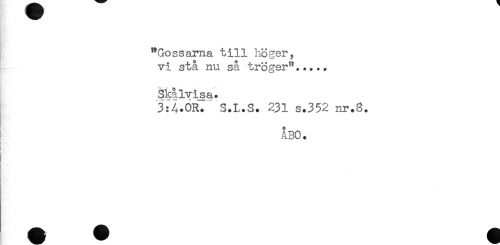 //// "Gossarna till höger, //// vi stå nu så tröger"..... //// Skålvisa. //// 3:Ä.0R. S.l.S. 231 s.352 nr.8. //// ÅBO. ////