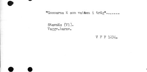 //// "Gossarna ä som vatten i träg"....... //// BrJ<)'<ty <,< i. //// Stavnäs (Vi). //// Vaggv.barnv. //// V F F 1234. ////