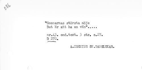 //// "Gossarnas största nöje //// Det är att ha en vän"..... //// nr.43. end.text. 3 str. s.27. //// D 272. //// å.YSEIIUS yj.DMSLEKAR. ////
