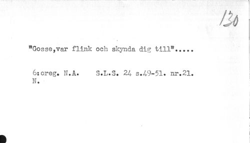 //// t //// "Gosse,var flink och skynda dig till"..... //// 6:oreg. N.Å. S.L.S* 24 s.49-51. nr.21. i //// N. //// i //// f //// t //// t //// < ////