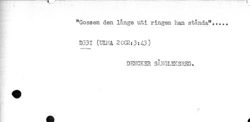 //// . . //// "Gossen den långe uti ringen han stånda'*..... //// D33I (UIMA 20(2:3:43) //// . //// DENCKER SÅNGLEOREG. //// - ////