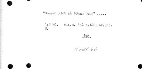 //// "Gossen gick på högan berg"...... //// 1:7 KO. S.L.S. 352 s.1221 nr.535. //// N. //// ,ÅB0. //// * ////
