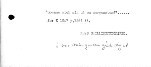 //// i! //// !! //// "Gossen gick sig ut en morgonstund"...... //// ! ^ Se: E 1847 y,l86l ii. //// i //// % //// B //// KB: S SKILUNGTRYCKSREG. //// , ^ t //// //// /