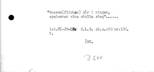 //// "Gossen(flicksn) gar i ringen, //// ^^ spatserar sina stolta steg"...... //// 1:6.^-J0-LB^ S.L.S. 46.s.450 nr.192. //// N. //// ÅBO. //// t //// r, _ __ ////