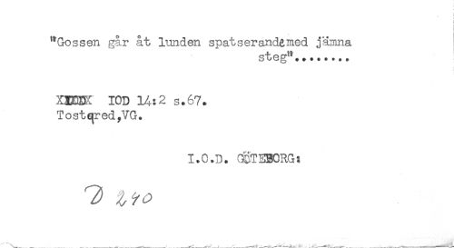//// ! //// i //// } //// "Gossen går åt lunden spatserandemed jämna //// steg"... //// XBSnr IOD 14:2 S.67+ //// Tostqred,VG. //// I.C.D. (^TEBORG: ////