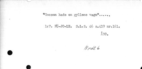 //// - //// "Gossen hade en .gyllene vagn"...... //// 1:7. P&-JO-LE. S.L.S. A6 s.419 nr.l6l. //// ÅBO. ////