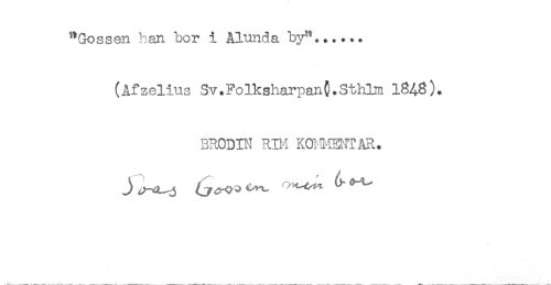 //// "Gossen han bor i Älunda by"...... //// (Afzelius Sv.FolksharpanC.Sthlm 1848). //// BRODIN RIM KOH-HHTÅR. ////