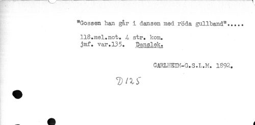 //// "Gossen han går i dansen med roda gullband"..... //// 118.mel.not. 4 str. kom. //// jmf. var.135. Danslek. //// CAKLHED1-G.S.L.M. 1892. ////