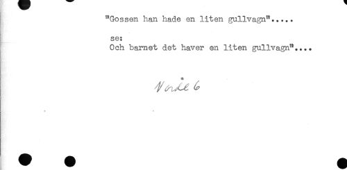 //// "Gossen han hade en liten gullvagn"..... //// se: //// Och barnet det haver en liten gullvagn".... //// i * * ////