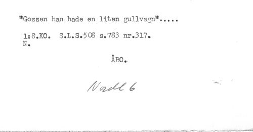 //// "Gossen han hade en liten gullvagn"..... //// 1:8.K0. S.I-.S.508 s.783 nr.317. //// N. //// ÅBO. ////