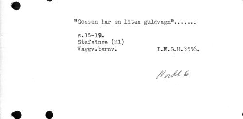 //// "Gossen har en liten guldvagn"....... //// s.lS-19. //// Stafsinge (Hl) //// Vaggv.barnv. I.F.G.H.3556. ////
