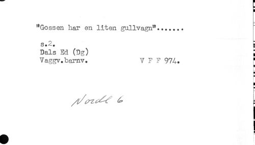 //// "Gossen har en liten gullvagn"....... //// s.2. ^ //// Dals Ed (Dg) } //// Vaggv.barnv. V F F 97A. [ //// 5 //// L //// ) //// H //// ! //// H ////