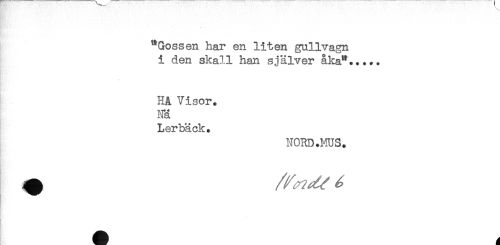 //// ' //// "Gossen har en liten gullvagn //// i den skall han själver åka"..... //// HA Visor. //// Nä //// Lerbäck. //// NORD .MUS. ////