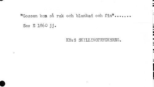 //// "Gossen kom så rak och blankad och fin"....r //// t //// Se: E 1860 jj. ^ //// ! //// KB:S SKILLINGTRYCKSREG. * //// i //// i ////
