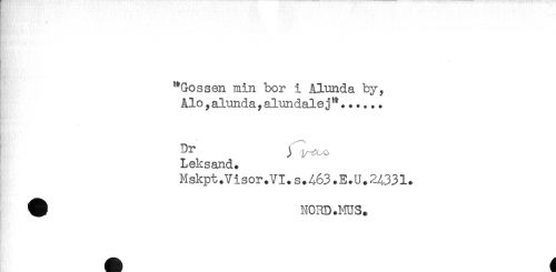 //// "Gossen min bor i Alunda by, //// Alo,alunda y alundalej"...... //// Dr ) ^ „ //// Leksand. //// Hskpt.Visor.VI. s.463.E.U. 24331. //// # N03D.MUS. ////