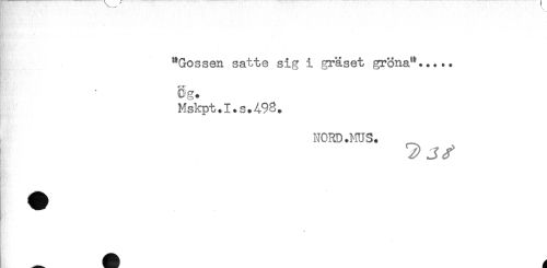 //// "Gossen satte sig i gräset gröna"..... //// Og. //// Mskpt.I.s.498. //// NORD.MUS. //// - ////