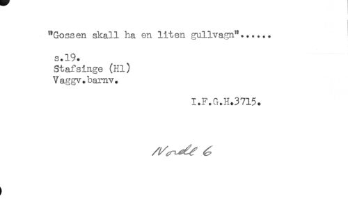 //// "Gossen skall ha en liten gullvagn"...... //// s.19. //// Stafsinge (Hl) //// Vaggv.bamv. //// I.F.G.H.3715. //// ) ////