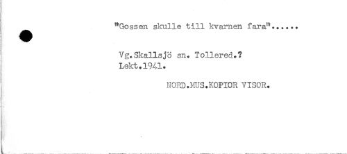 //// ^^ "Gossen skulle till kvarnen fara"...... //// ' Vg.Skallsjö sn. Tollered.? //// Lekt.1941. //// NORD.HUS.KCPIOR VISOR. //// ^ - //// y' ////