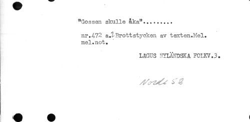 //// "Gossen skulle aka".... //// nr.472 a.T-Brottstycken av texten.Mel. //// mel.not. //// LAGUS ^ZLÄMDSKA FCIKV.3. ////