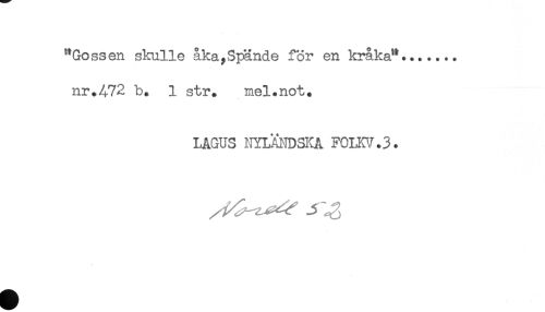 //// "Gossen skulle åka,Spände för en kråka"....... //// nr.472 b. 1 str. mel.not. //// LAGUS NYL^DSKA F0LKV.3. ////