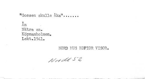 //// "Gossen skulle åka"....... //// * //// ån //// Nätra sn. //// Köpmanholmen. //// Lekt.1941. //// NORD HUS KOPIOR VISOR. ////