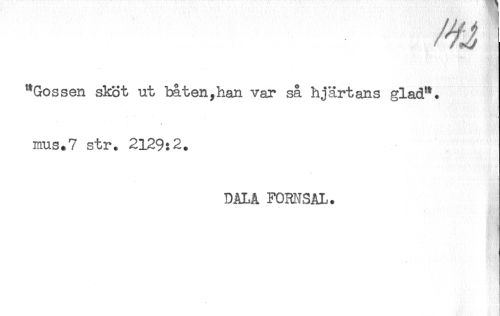//// "Gossen sköt ut båten,han var så hjärtans glad". //// < //// mus.7 str. 2129:2. //// DåLA FOmSAL. //// H ////