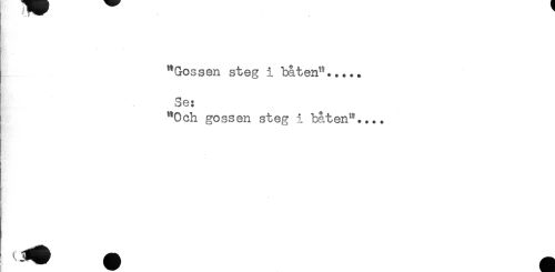 //// t'- //// "Gossen steg i båten"..... //// ^ ^ Se: //// "Och gossen steg i båten".... ////