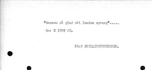 //// ' - ' . . ' -.- --'.< '' ' ' ;< ' . ' ' ^ - //// . //// n.. å //// "Gossen så glad uti lunden sprang"..... //// Se: E 1$69 ff. //// * //// . //// KB:S SKILLINGTRYCKSREG. ////