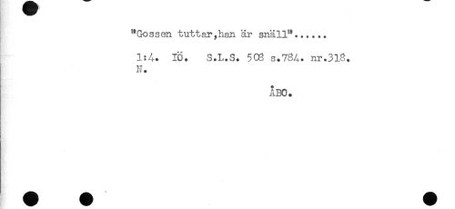 //// "Gossen tuttar,han är snäll"...... //// 1:4. 10. 3.I..S. 503 s.784. nr.318. //// N. //// ÅBO. //// //// /