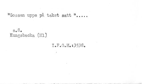 //// "Gossen uppe på taket satt //// s.8. //// Kungsbacka (Hl) //// I.F.G.H.:3538. //// t ////