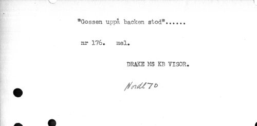 //// "Gossen uppa backen stod"...... //// nr 176. mel. //// DRAKE MS KB VISOR. ////
