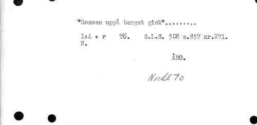 //// "Gossen uppå berget gick".... //// 1:4 + r TÖ. S.L.S. 506 s.857 nr.271. //// N. //// ÅBO. //// t ////