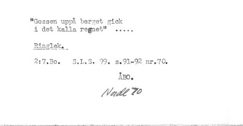 //// "Gossen uppå berget gick //// i det kalla regnet" ..... //// Ringlek. //// 2:7.Bo. S.L.S. 99. s.91-92 nr.70. //// ÅBO. ////