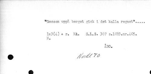 //// "Gossen uppå berget gick i det kalla regnet"..... //// 1:3(A) + r. NA. S.L.S. 367 s.l093.nr.A05. //// N. //// ÅBO. //// .... //// __ ////