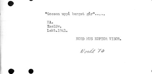 //// "Gossen uppå berget går"..... //// . //// HA. //// Esslöv. //// Lekt.1941. //// NORD HUS KOPIOR VISOR. ////