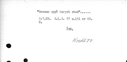//// "Gossen uppå berget stod"...... //// 2;7.KB. S.L.S. 57 s.151 nr 69. //// N. //// ÅBO. ////