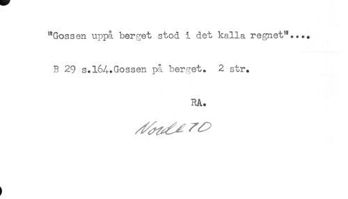 //// "Gossen uppå berget stod i det kalla regnet".... //// B 29 s.16A.Gossen på berget. 2 str. //// RA. ////
