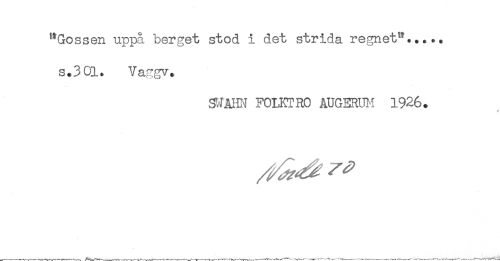 //// "Gossen uppå berget stod i det strida regnet"..... //// s.301. Vaggv. //// SWAIB3 FOLKTRO AUGERUM 1926. ////