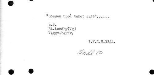 //// "Gossen uppå taket satt"...... //// s.3. //// St.Lundby(Vg) //// Vaggv.barnv. //// I.F.G.H.18A2. ////
