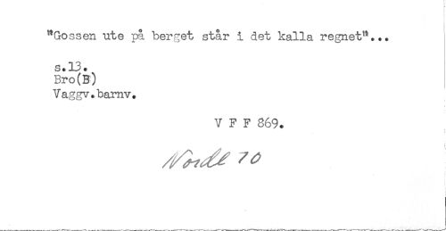 //// "Gossen ute på berget står i 3et kalla regnet"... //// s.13. //// Bro(B) //// Vaggv.barnv. //// V F F 869. //// < //// t //// * < //// < //// i //// t //// i //// t //// * ////