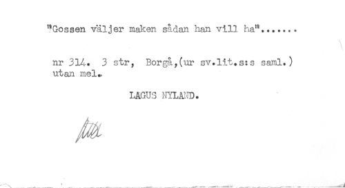 //// "Gossen väljer maken sådan han vill ha"....... //// nr 314. 3 str, Borgå,(ur sv.lit.s:s saml.) //// utan mel.. //// LAGU3 1-IYLMD. ////