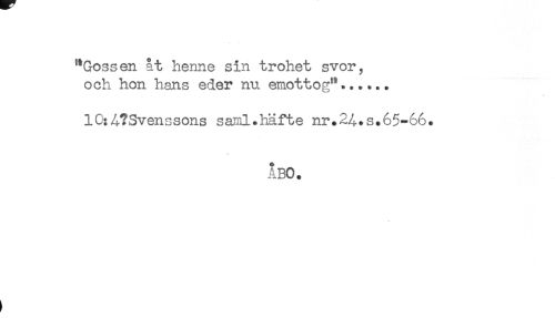 //// "Gossen åt henne sin trohet svor, //// och hon hans eder nu emottog"...... //// 10:4?Svenssons sanil.häfte nr.2/^.s.65-66. //// ÅBO. //// t ////