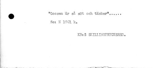 //// t //// ! //// !- //// ^^ "Gossen är så söt och täcker"...... //// Se: N 1801 k. //// KB:S SKILLINGTRYCKSREG. ////