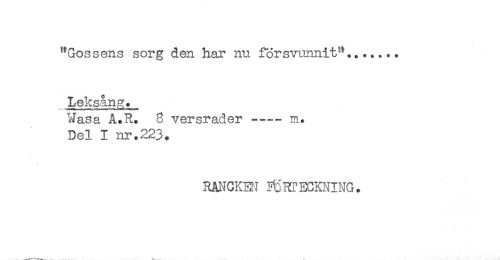//// "Gossens sorg den har nu försvunnit"....... //// Leksång. //// Wasa A.R. 3 versrader --- m. //// Del I nr.223. //// RAI^CKSI 3t)HTECKNING. ////