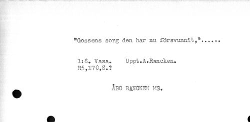 //// "Gossens sorg den har nu försvunnit,"...... //// 1:8. Vasa. Uppt.A.Rancken. //// R5,170,8.? //// ^ ÅBO R&NCKEN MS. ////