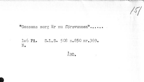 //// "Gossens sorg är nu försvunnen"...... //// 1:6 PÄ. S.L.S. 5C6 s.850 nr.369. //// N. //// ÅBO. ////