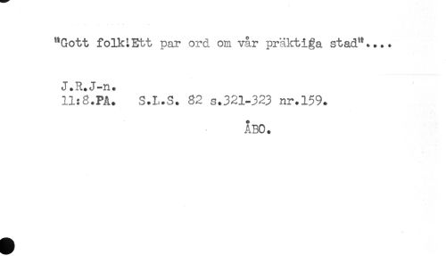 //// "Gott folMEtt par ord om vår präktiga stad".... //// J.R.J-n. //// 11:8.PÅ. S.L.S. 82 s.321-323 nr.159. //// ABO. ////