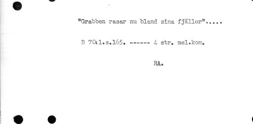 //// "Grabben rasar nu bland sina fjällor"..... //// B 70:l.s.l65.----- 4 str. mel.kom. //// RÅ. ////