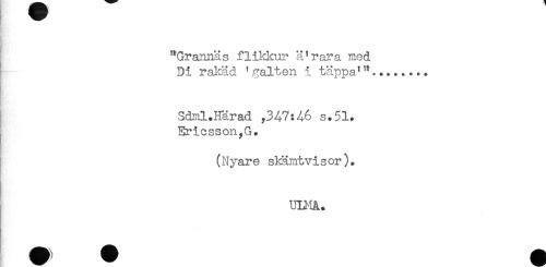 //// "Grannäs flikkur ä^rara med //// Di rakäd ^ galten i täppa* //// Sdml.Härad ,347:46 s.51* //// Ericsson,G. //// (Nyare skämtvisor). //// UB-lÄ. ////