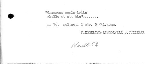 //// "Grannens gamla kråka //// ' skulle ut" att åka"... //// K: //// nr 76. mel.nct. 1 str. D 241.komm. //// * //// F. EGGELING-RINGDANSAR o. JULLH^AR ////